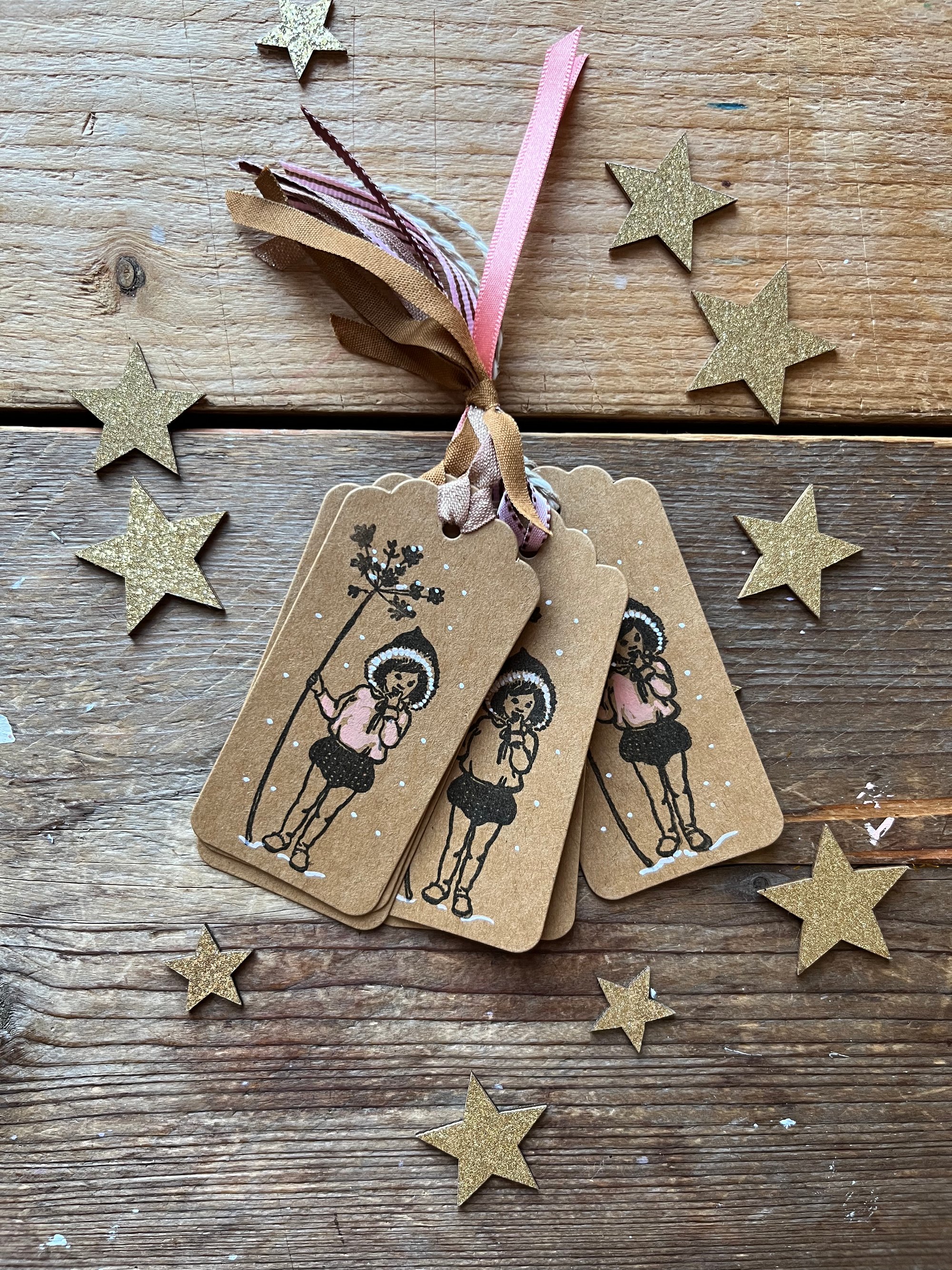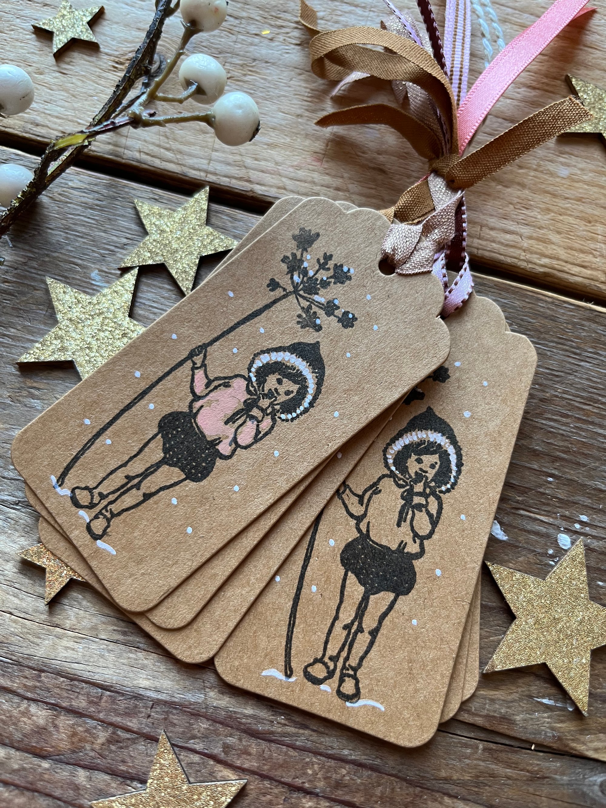 6 hand stamped medium Kraft swing tags